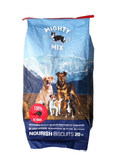 If you’re getting a puppy, this is the dog biscuit for you. We recommend our Mighty Mix Nourish Dog Biscuit for feeding puppies. For optimum care, we recommend feeding puppies a well-balanced combined soft and dry food diet by either feeding Mighty Mix Dog Roll combined with the Mighty Mix Nourish Dog Biscuit.