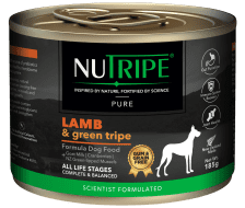 With more than 92% animal protein ingredients, NUTRIPE PURE Lamb & Green Tripe dog food is formulated using premium quality lamb, free range green venison tripe and nutrient-rich organs, along with nutrient rich goat's milk and a proprietary blend of Cranberries, Green-Lipped Mussels and Dried Kelp for added health benefits.