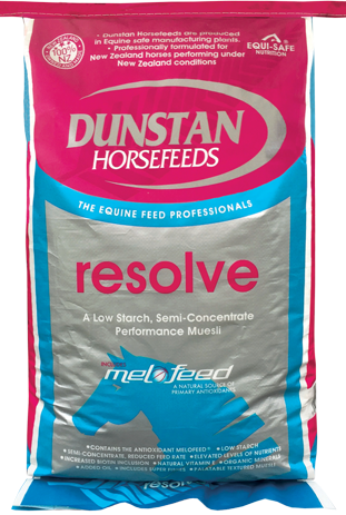 Dunstan Resolve® is a low starch feed ideal for horses that do not tolerate high starch rations for behavioural or physiological reasons.