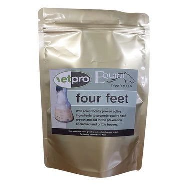 Equine Four Feet contains zinc, sulphur, menthionine and biotin, all essential components of strong healthy hooves, in a gelatin and yeast base. Gelatin contains all essential amino acids except tryptophan.