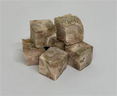 Medium sized frozen free flowing cubes of Green Ovine Tripe.