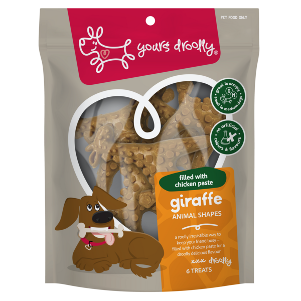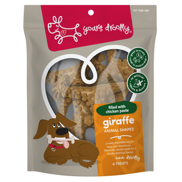At Yours Droolly we celebrate our dogs for the unlimited joy, fun and cheekiness that they bring to our lives. We love that dogs are less judgemental, more forgiving, more loyal and much more fun. We see things from four paws, not two. That's why we're always creating new ways to celebrate the time we spend withour dogs, sharing the limitless ability they have to love us. A roolly irresistible way to keep your friend busy! Made from vegetables, chicken and added peanut butter, filled with a droolly delicious chicken paste, these fun animal shapes will keep your dog entertained and tails wagging for more. Great to occupy small to medium dogs and a droolly delicious reward for larger dogs.